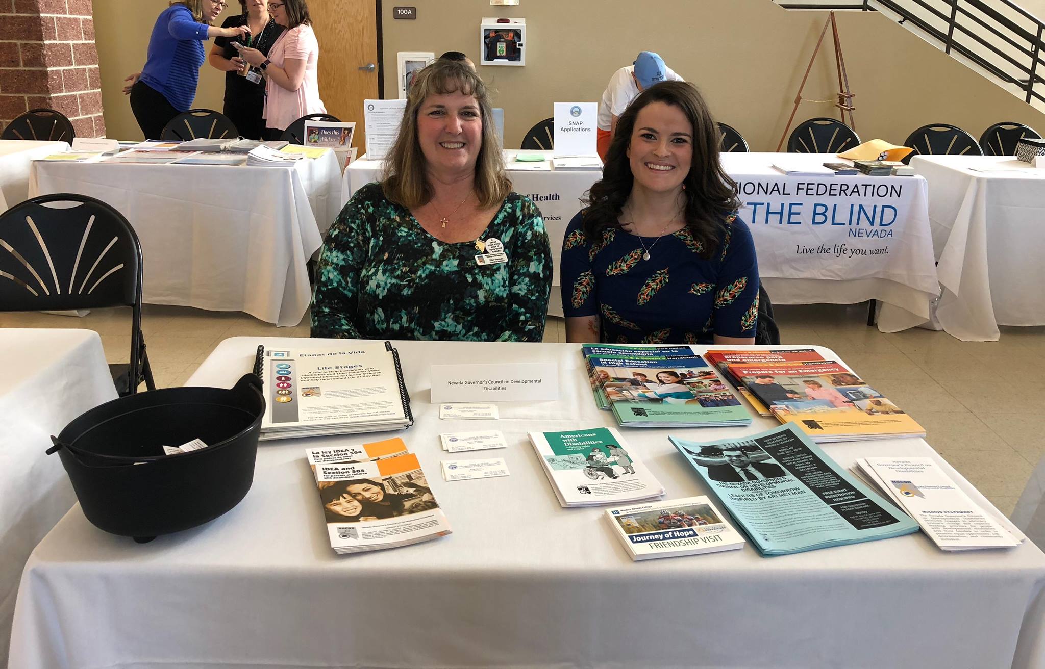 NGCDD Executive Assistant, Ellen Marquez, and Projects Manager, Catherine Nielsen, hosting a vendor booth at the Washoe County School District Resource Fair 2018.